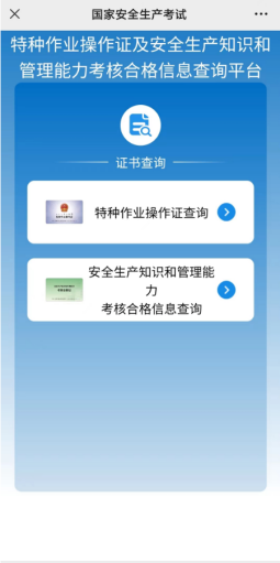 步驟 2:根據(jù)需要選擇“特種作業(yè)操作證查詢”或“安全生產(chǎn)知識(shí)和管理能力考核合格信息查詢”,如實(shí)填入證件信息和姓名,就可以看到證書(shū)信息和復(fù)審時(shí)間。